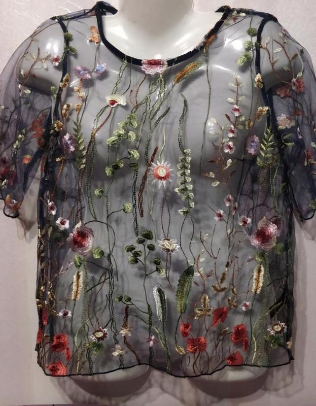 Гарна блуза Пог 44/45см рукав короткий висота виробу 60см сзаду е застiбка Не вдягалося.