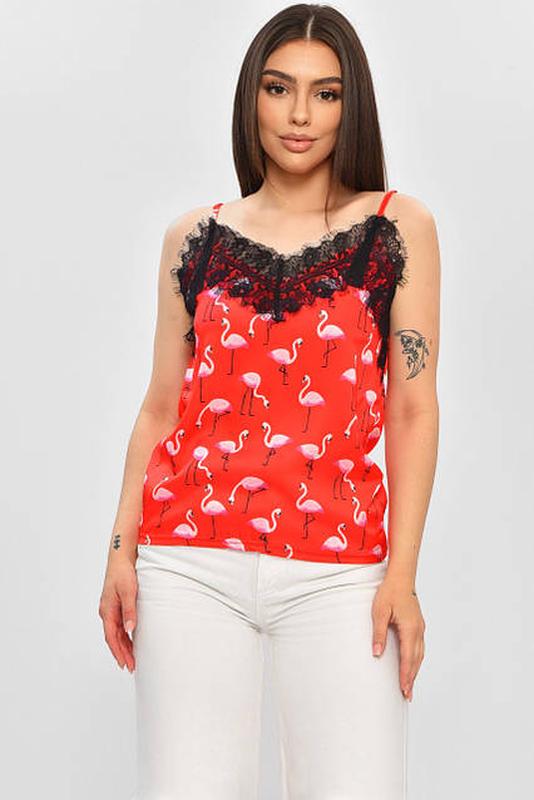 блуза атлас з мереживом на регульованих бретелях принт фламінго