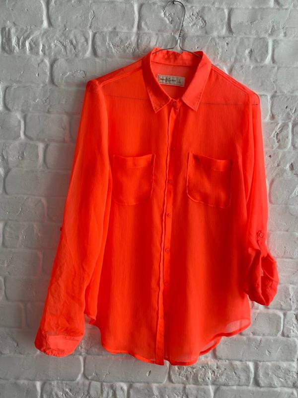 Яскрава помаранчева напівпрозора рубашка блуза Abercrombie Ідеальний стан Поліестер Розмір S