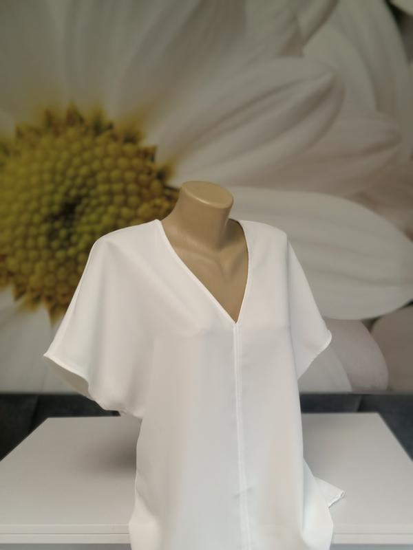 Класична однотонна блузочка з коротким рукавом білого кольору. Легка та комфортна. Приємна на дотик. Цупка щільна тканина. Практично не тягнеться. Лягає по фігурі. Фасон прямий. Є виріз-декольте в міру. Є розміри. 50р на пог-54-56 48р на пог-52-54
