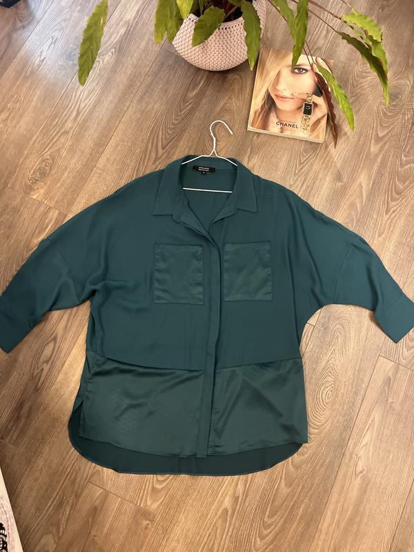 Смарагдова жіноча сорочка з шифону та шовку . розмір 16