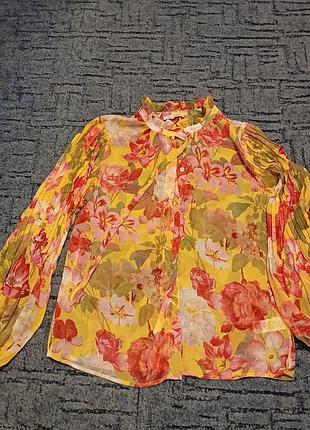 Яскрава блуза рукав довгий і дуже цікавого крою на гудзиках воротнік стійка + зав'язки зв'язкиблуза прямого крою розмір 12-14