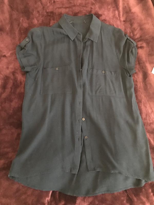 Темно синяя блуза с коротким рукавом , оверсайз, размер 36 идёт очень свободная