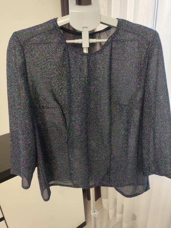 Блузка з люрексом вінтаж Довжина 63 см довжина рукава 50 см ширина в плечах 40 см пів'обєм в грудях 60 см пів'обєм в талії 60 см пів'обєм низу 61 см