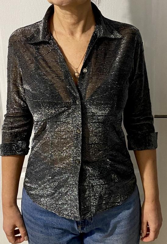Нарядна жіноча блузка, напівпрозора, на ґудзиках. Рукава укорочені. Стан ідеальний. Розмір 36/S/44 38/ M/46