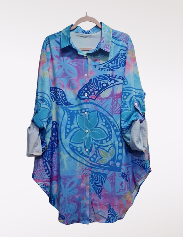 Класна жіноча сорочка. Подовжений фасон з округленими краями,Рукав підстегуються патами в 3/4. Тканина приємна до тіла, схожа на полікотон. Нова , без паперової бірки. ПОГ-62 Полуобхват по низу-68 Рукав-65 Длина-93 Плечі-46