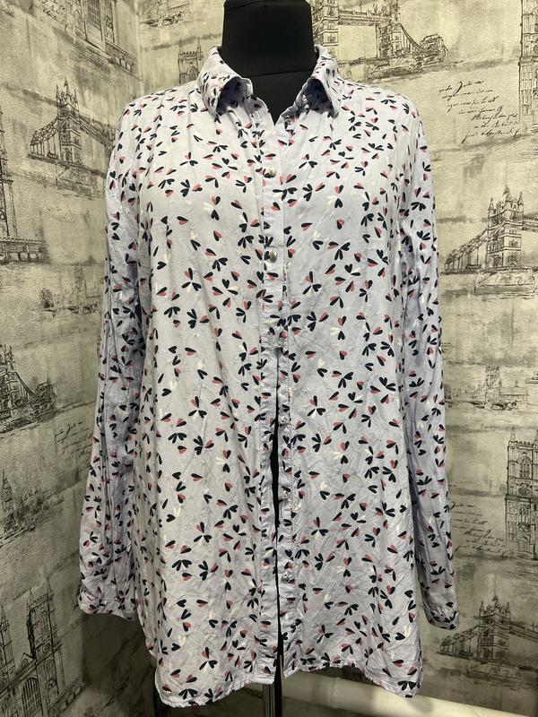 Блакитна рубашка блуза в квіточку