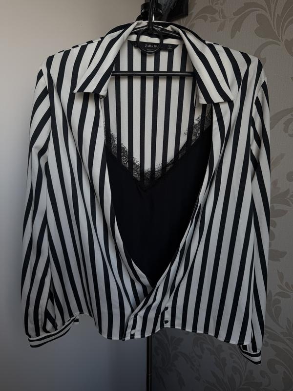 Жіноча блуза з шовковою майкою ▪️ZARA Розмір М ( 42-46) Майка вшита до блузи ▫️Колір: чорно-біла