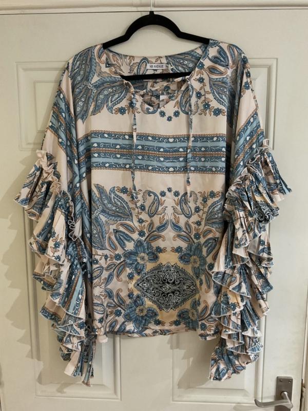 блузка з пейслі-принтом та рюшами на рукавах, бренду NB Avenue. Цей бренд пропонує різноманітний одяг у стилі "lagenlook" та бохо, часто з принтами та вільним кроєм Пог-62 см Довжина-72 см
