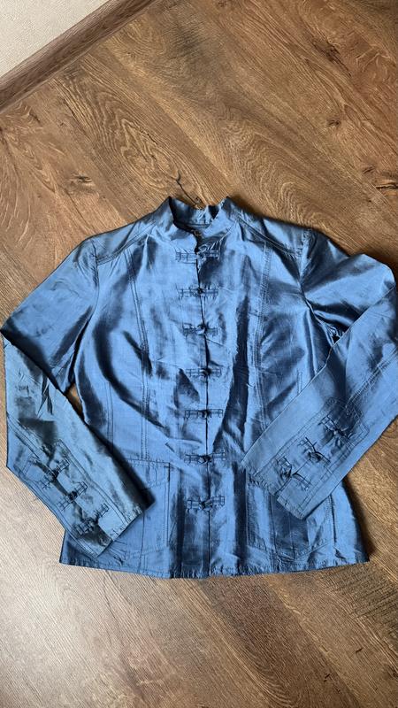 Шовкова блуза 100% шовк, дуже гарного синьо-смаргдового кольору в японському стилі, дуже гарно переливається Розмір 38, М Ідеальний стан