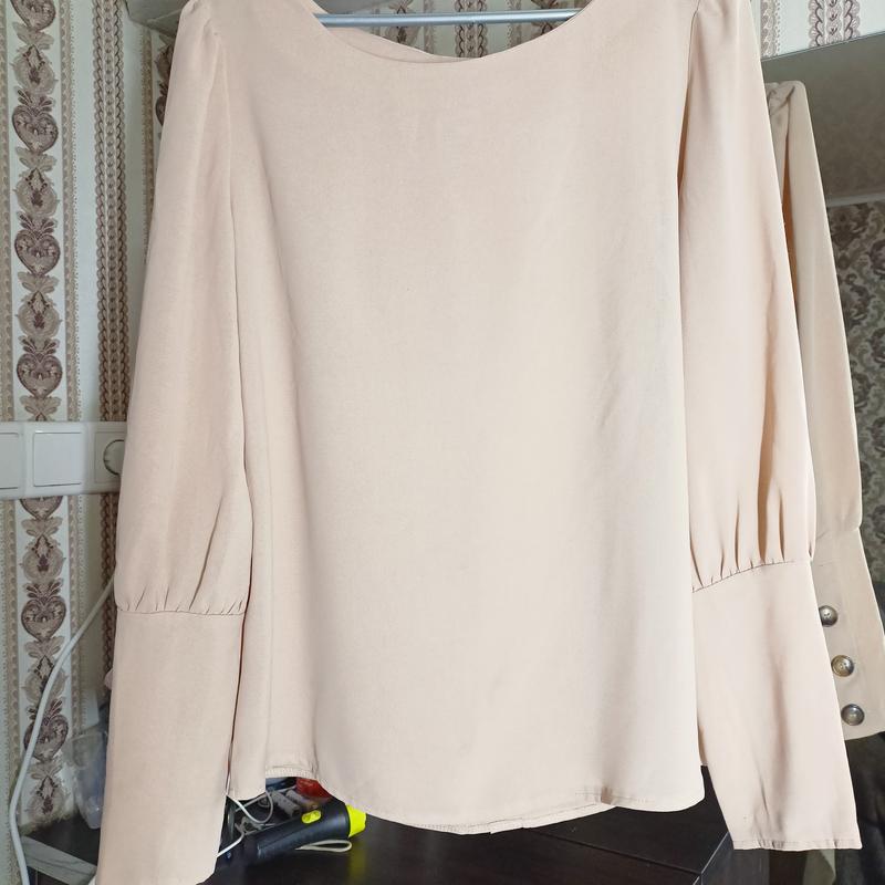 Шикарная Нарядная блуза, пошил прямой, сзади отделка пуговицы, рукав на манжетах с пуговицами, ткань тяжелый шелк, шифон. Объем груди 100 см, длина 64 см, рукав 64 см. Оплата продавца на карточку.