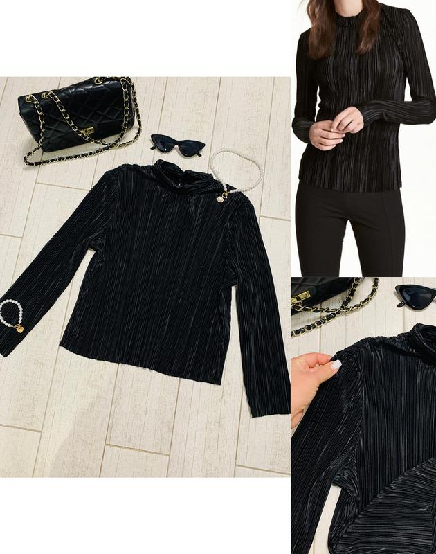 Розмір S-M ✅Заміри: Під руками 47 Груди 45 Талія 43 Рукав 53 до комірця 67 Довжина від плеча до низу 52 Пліссе Легенька та тоненька Є комірець-стійка