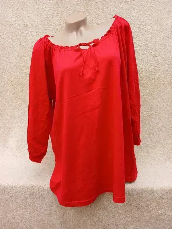 Цікава тонка червона блуза, можна носити як зазвичай або на плічках, трикотаж бавовна, стали ідеал НОГУ 70-75, НО стегна 70-75, довжина 73 Заміри відмінностей половина