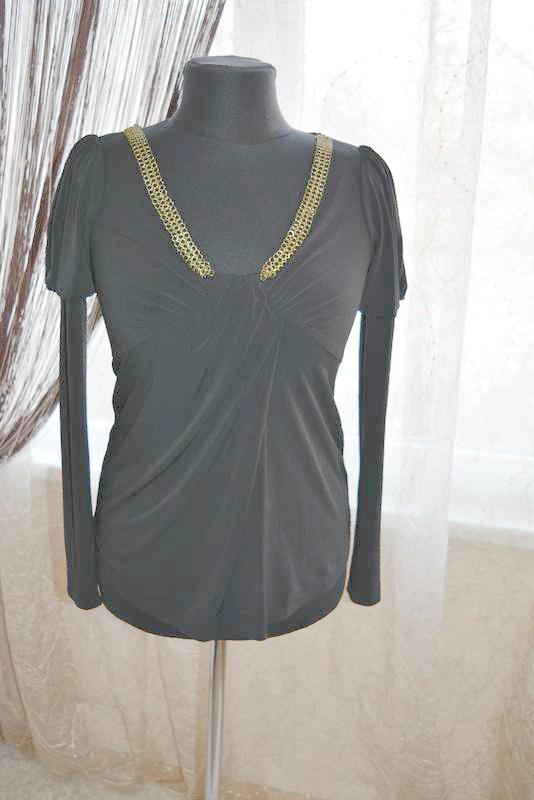 Сексуальная блузка, масло, цепи. Одета на манекен 52 размера. Очень удачный крой- скрывает животик, если он есть, удачно открывает и приподнимает грудь - везде правильные акценты. Цвет насыщенный черный, 1-е фото специально засветила, чтобы было видно модель.