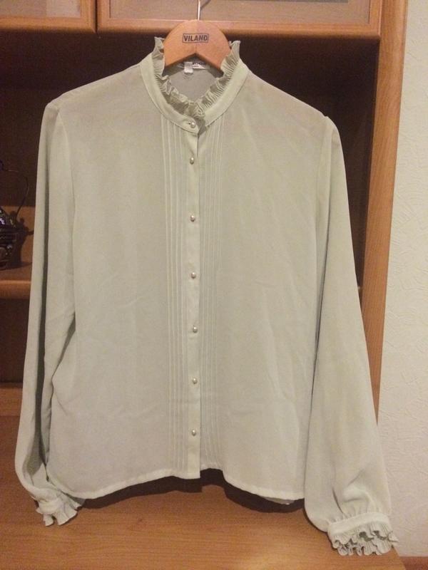 Шифонова Блуза, фірмова, виглядає супер, ніжно салатового кольору. Довжина 63 см, ширина по грудях 55 см, рукав 63 см