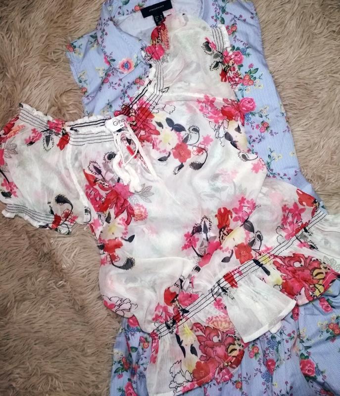 Прозора блуза в квітковий принт з рукавом-ліхтариком. Легка і невагома