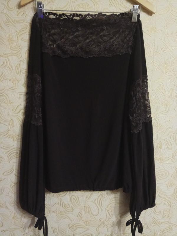 Актуальная базовая блуза,кофта на 48-50 р-н.,из гипюровыми вставками, искавшая модель с завязками на рукавах и по низу изделия,шоколадного цвета, фото нажаль чуть темнее, в реальности лучше.Выглядывает очень красиво.Можна носить как под юбку,брюки,джинсы. Мягкая и легкая ткань,в идеальном состоянии. Состав:50% вискоза,50% полиэстер. Замеры: плечи 40 см, рукав 63 см., об.грудей 53 см., длина. изделию 57 см. Перешлю после 100% оплаты на карту, отправлю по Новой или Укр по почте.За более детальной информацией загляните мое другие объявления.