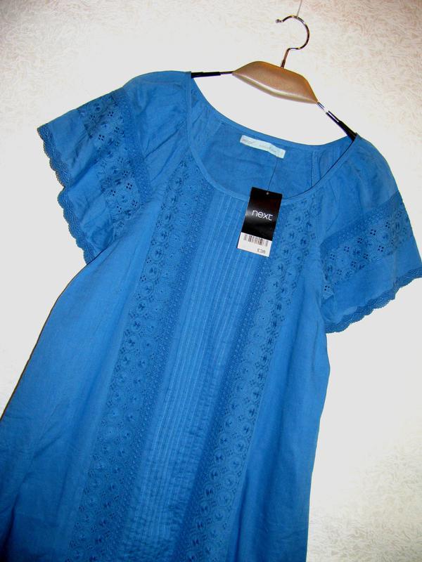 Дуже гарна, легка, із натуральної тканини блуза, туніка Next Тонесенька підкладочка теж із натуральної тканини - 100% котон Ширина між проймами - 47см по талії- 53см по низу - 66см довжина рукава від горловини - 23см довжина по спинці - 80см Состав: 100% котон