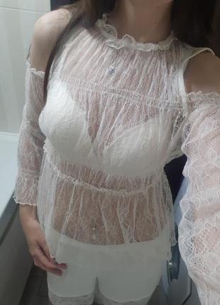 Кружевная блуза цвета шампань. очень тонкое, но прочное кружево. Свободного покроя. длина 55 см длина рукава 60 см