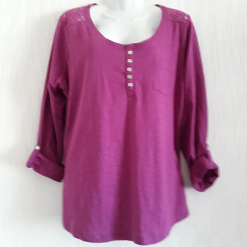 Продам новую нарядную трикотажную кофточку приятно малинового цвета с гипюровыми вставками 46 евро размера на наш 52 . Рукав три четверти, но можно отпустить манжет и получиться длинный рукав ПОГ 56 ПОБ 60 Длина 70 100% коттон. Ирландия