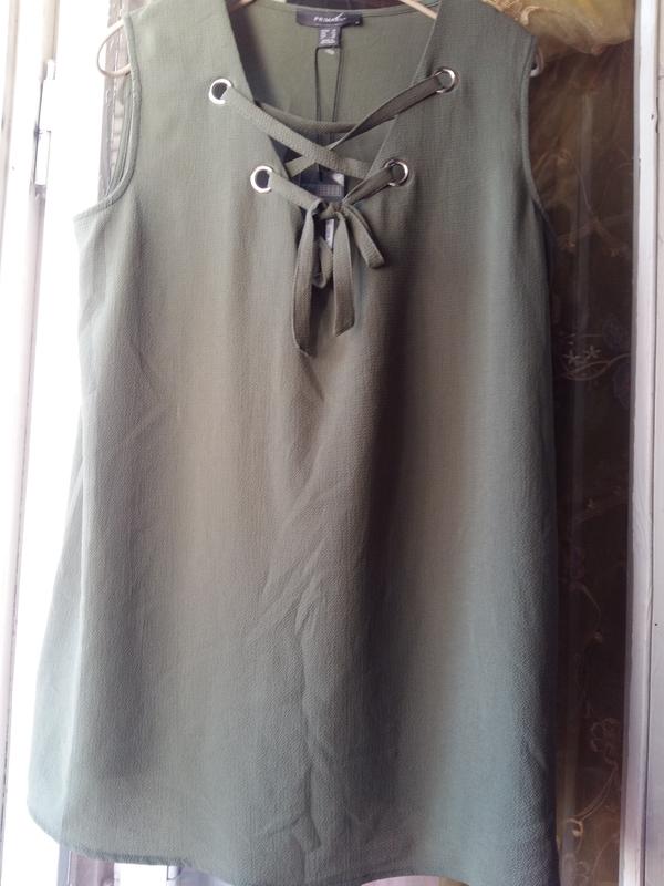 Довжина-67 Пог-50 Низ-58(разрезики) Трохи тягнеться,пориста фактура. З цінником.Фото засвічують-насичений колір хакі.