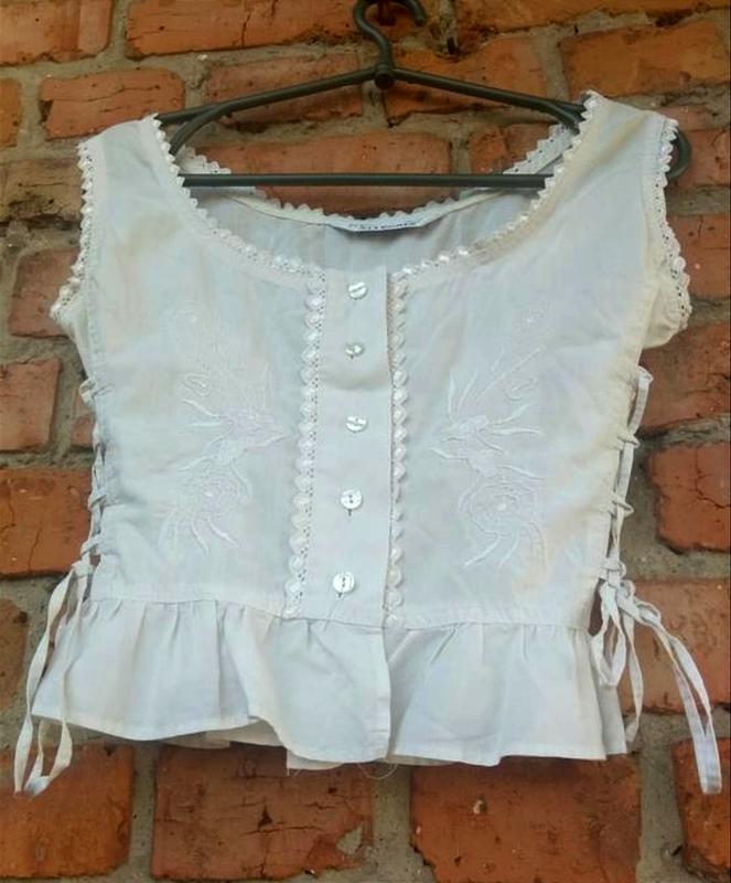 size S/M Стильний ТОП слонової кістки з вишивкою з легкої натуральної тканини. Попереду застібається на гудзики. Ідеальний варіант для спекотного літа. 👇 Обов'язково ДО покупки звірте виміри: - Довжина 43 см - ПОГ 47 см - ПОТ 33 см - Рюшечка 6 см 🙂 З нетерпінням чекаю у меня на сторінці. Бажаю вдалих покупок і супер настрою від них.