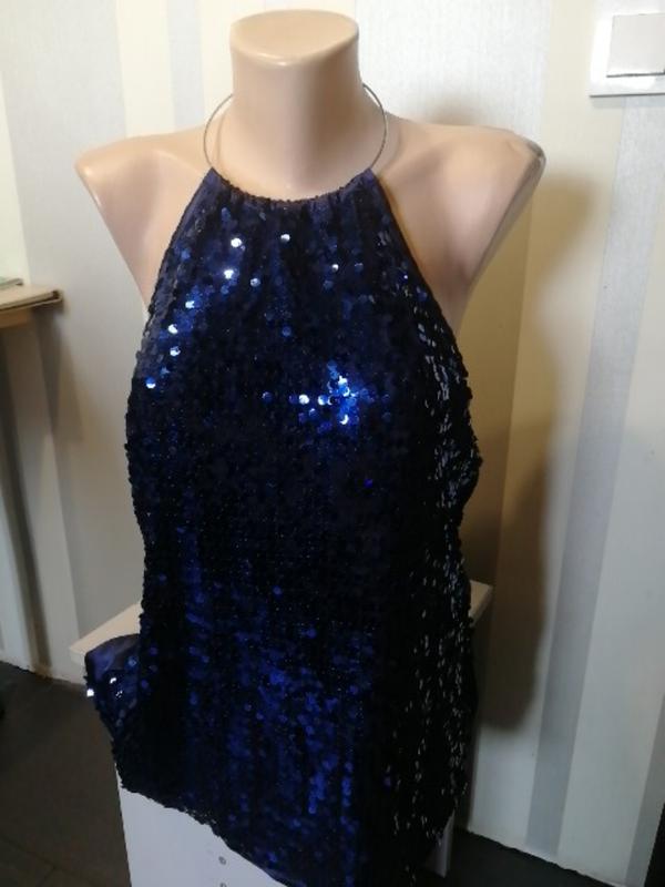 Нарядна блузка серед з паєтками, ззаду тканина під атлас. Розмір вказано 44, але вона маломерит на 42 (14)