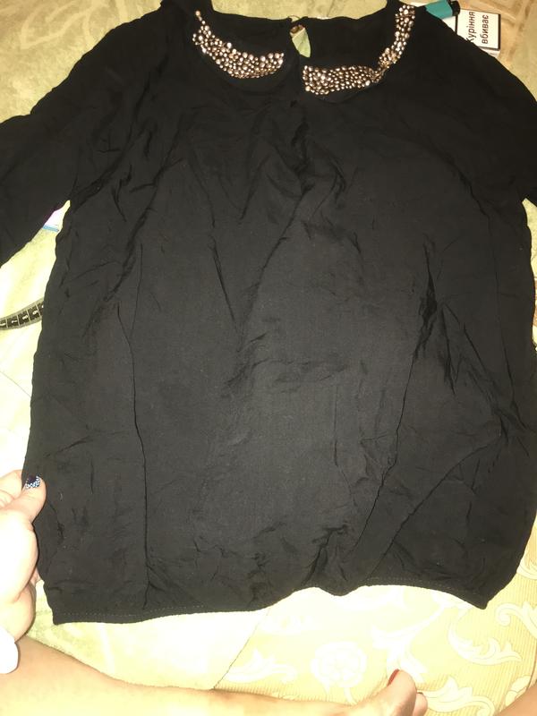 Дуже нарядна блузка Супер якість ідеальний Стан за винятком того, що на одній половинці коміра не вистачає намистинок Але це абсолютно не помітно коли одягнена на людину Поступлюся Внизу гумка