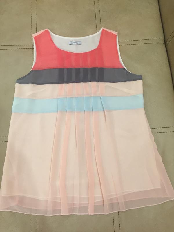 Гарна блузка, ніжні кольора, фірма Sela, розмір44, є підкладка, не просвічується Ширина під ведмедиками 45 см Довжина 61 см Плечі 33 см