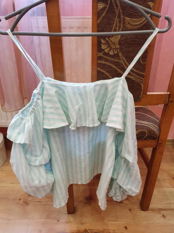 Блуза з відкритими плечима, об'єднання ємними рукавами та рушами