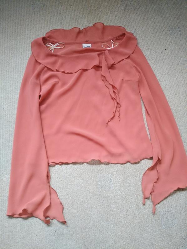 блуза річна, склад - віскоза, фасон з напіввідкритими плечима, круглою кокеткою, напівпрозора (немає можливості показати як сидить, мені мало), одягалися один раз. український бренд, всі шви якісні.