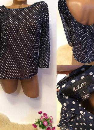 Размер S XS Цвет Белый Синий Блуза шифоновая в горошек в отличном состоянии, рукав 3/4, на спине бант