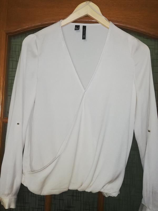 Блуза кольору слонової кістки, брендовий. Попереду запах, рукава з варіаціями різної довжини довгий рукав і 3/4.
