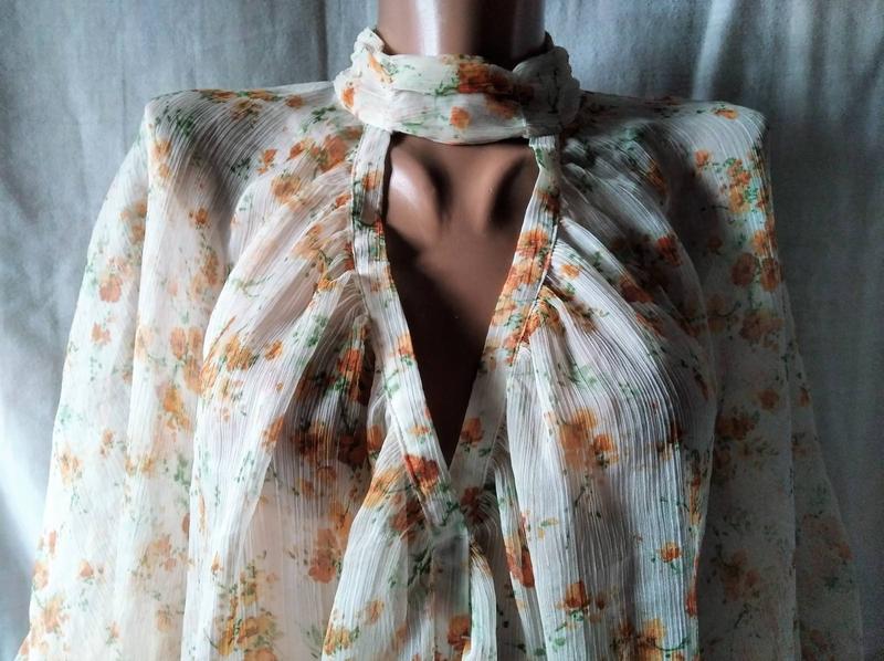 Сучасна,стильна. З ніжним принтом та збіркою по горловині та спинці. Всі виміри зроблені в спокійному (не розтягнутому) стані. Довжина(по спині) 67 Завширшки(пахви) 57 Рукав 70(реглан)