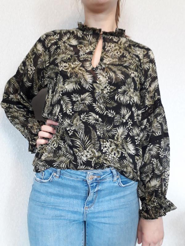 Продам симпатичну блузу в рослинний принт. Розмір S, M. Спереду на гудзику, на рукавах вставки з мережива. Дивіться інші мої оголошення:)