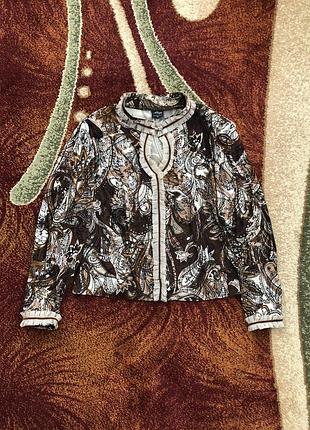 Гарна блузка, з актуальним рукавчиками, з принтом! Розмір: XL Заміри: ПОГ-54см Довжина - 54см Рукав-60см