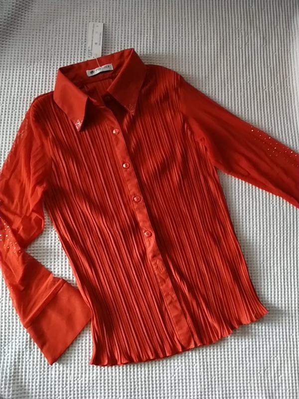 Красива блуза.Матеріал гофра тягнеться . П про р 50см., довжина 65см. , довжина рукава 59см.