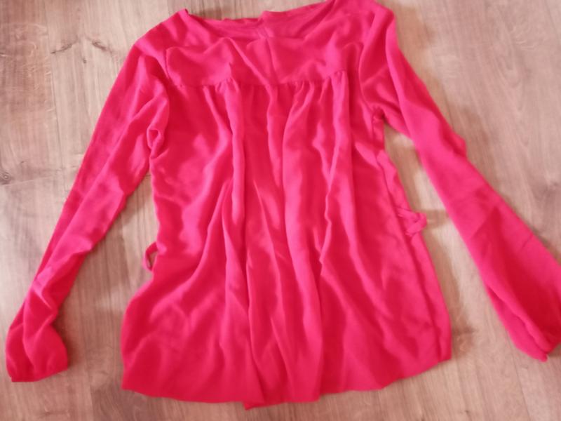Червона, вільного крою, на підкладці блузку. Заміри скину - пишіть.