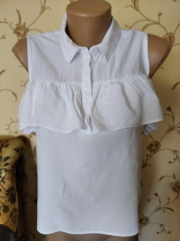 Ніжна блузочка з баскою,рукав приспущений,плечі відкриті,свобідного кроєм.Довжина 49 см,ПОГ - 46 див.