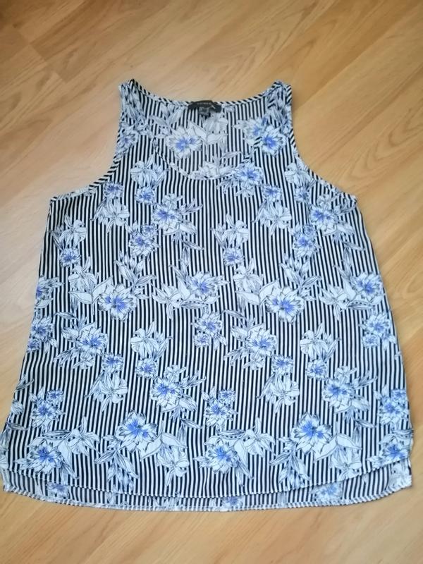 Симпатична, весела, легка блузочка, нова, без паперових бирок, спинка 62 см, перед від вирізу 48 см, плечі 28 см, ширина бретелі 2,5 см, пахви 49 см, низ 58 с , разрезики спереду 7 см, ззаду 11 див.