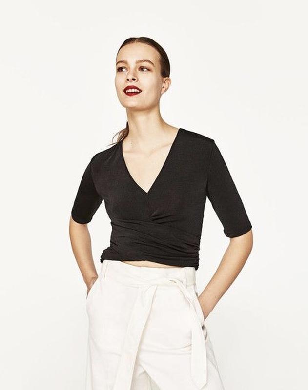 Блуза Zara. Нова. Розмір: S/36 Колір: чорний Рукав: 3/4 Дуже зластична. Арт. 5580/021/800 Завмер: Пог-39 Довжина-47