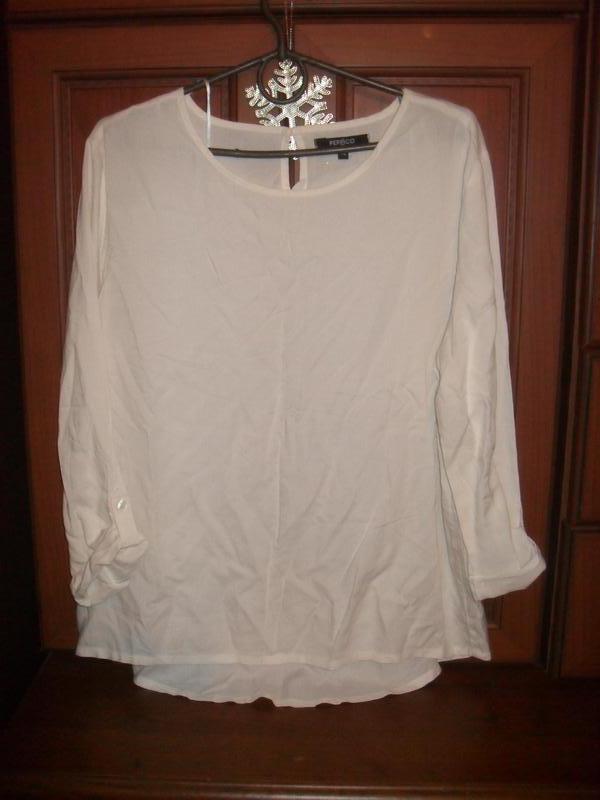 Стильна блузочка.Ширина в плечах 43см,довжина по спині 65см,перед 7см коротший,ширина в поясі 104см.Рукав можна закотити на трьохчвертковий,ширина в грудях 84см.Довжина рукава без закоту 50см.