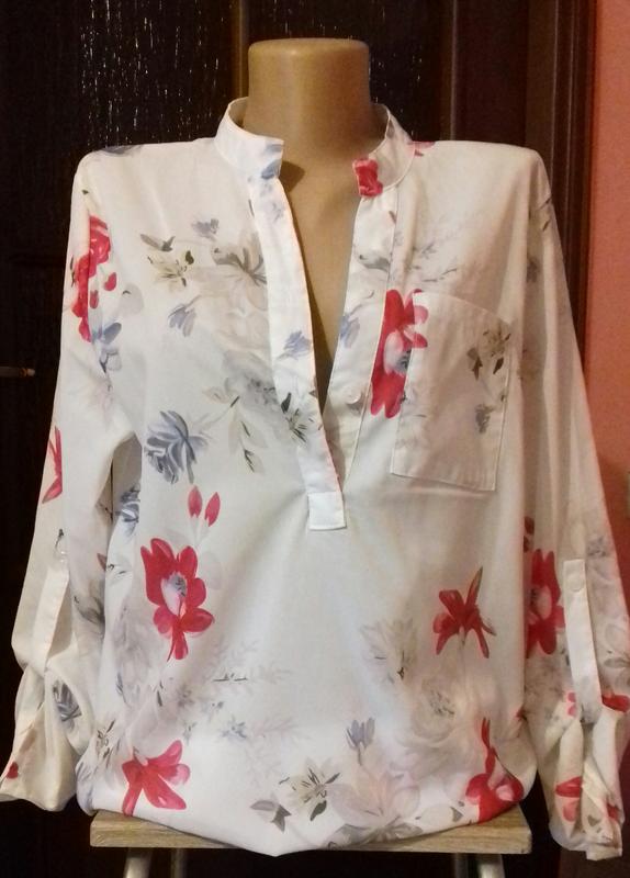 Дуже ніжна блуза, ідеально підходить як під спідницю, так і під штани, рукав регулюється. Розмір вказано 48, але орієнтуйтеся по замірах. довжина блузи 72, плечі 39, по грудях 104 см, стегна 108, довжина рукава від плеча 61см. За додатковою інформацією пишіть Пересилання тільки по передоплаті