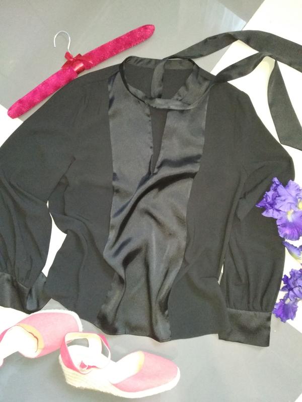 стильна і елегантна блуза, така річ входить у базу, яка повинна бути в кожної дівчинки!! стрічки, манішки-шовк! стрічки можна носити і як бант, заміри ПОГ 50, довжина 65, рукав довжина 60, напівобхват біцепс 17