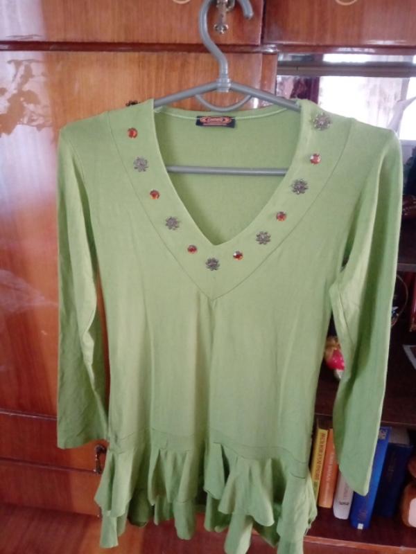туніка дуже гарного кольору хаккі але яскравіша,віскоза і еластан,в ідеальному стані без шлюбу та інших видів дефектів