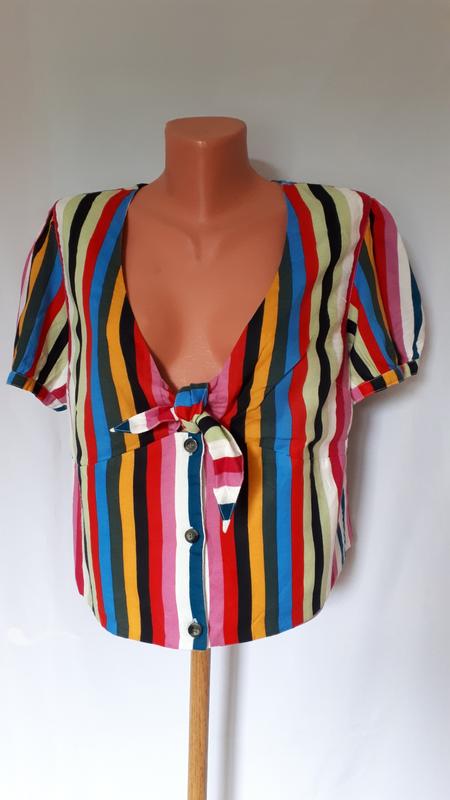 Стильна блуза в різнокольорову смужку на гудзиках michelle keegan (розмір 16-18)