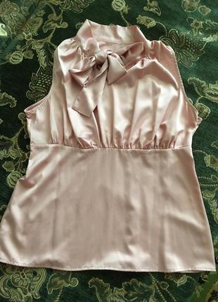 Стильна блузка ніжно рожевого кольору {камера погано передає - див. останнє фото найбільш близький до оригінального кольору}. Відмінне рішення для літніх офісних днів! Збоку на блискавці {робоча}. Крій по трапеції. Довжина 60 см, ПОГ 53 см, ПОТ 42 см, ширина низу 54 см