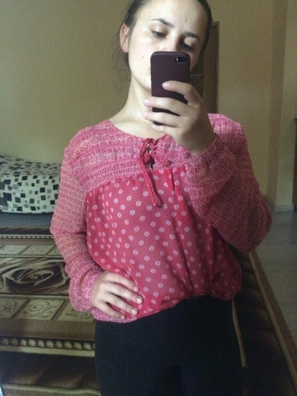 легка,вільного крою на останньому фото маленький нюанс,трохи видно нитки зшиття не замітно якщо не придивлятися тканина просвічується