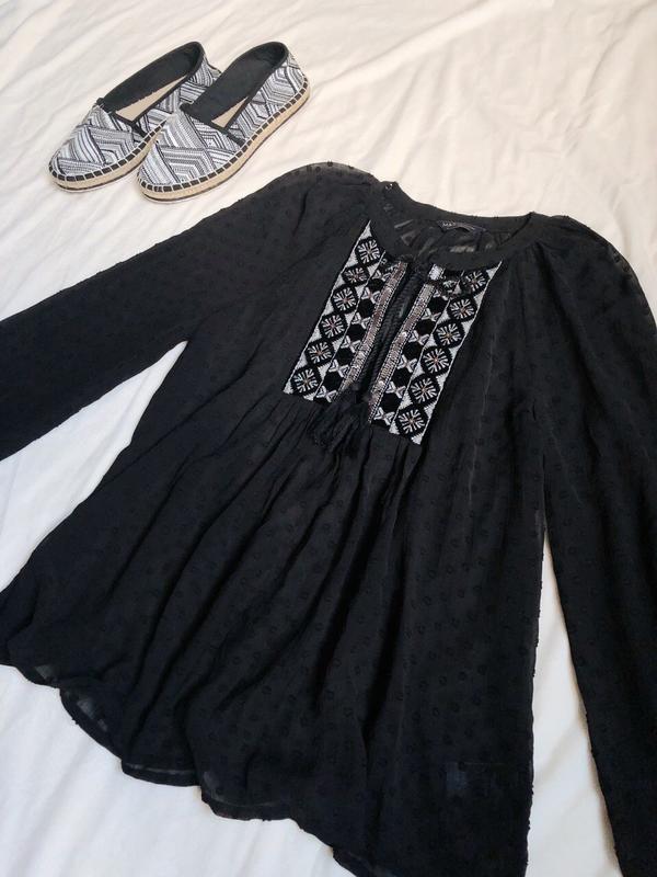 Дуже красива чорна блуза з вишивкою.Трохи просвічує.