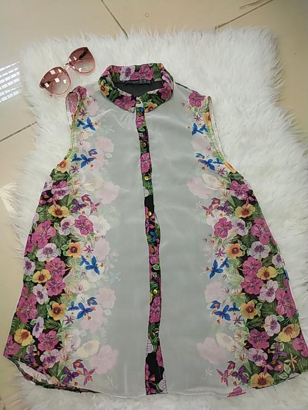 Відмінна блуза,багато різних квітів,підійде до різного кольору одягу.ПОГ47.5 ПОБ55 Длина61. На останньому фото,ледь помітна поперечна нитка
